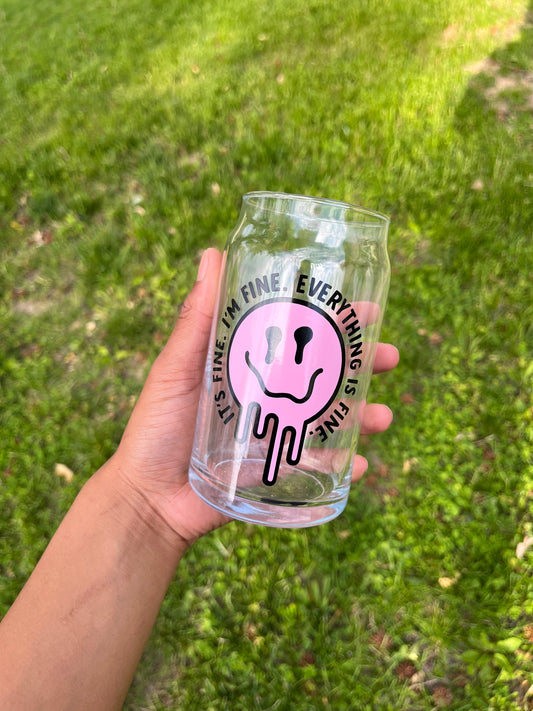 Retro Smiley Face Glass Can with Cheetah Print Straw and Bamboo Lid - 16oz